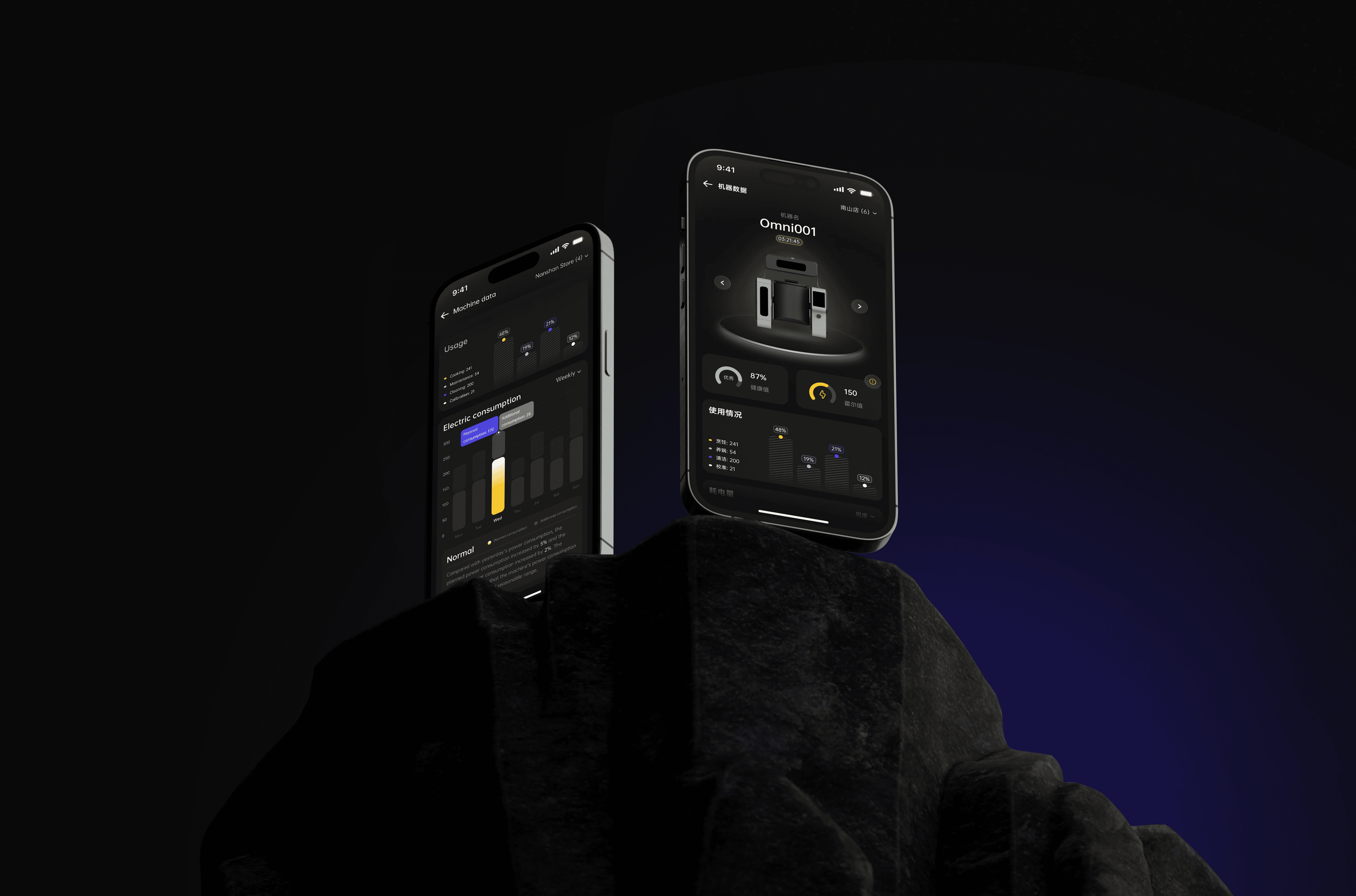 大部分合作用户的年龄为40-55岁区间的连锁餐饮老板,喜欢傻瓜式操作并一目了然的设计。所以设计的主要目的是让APP看起来既简洁明了又有科技感,让用户们用起来时,信息一目了然,操作简单顺畅,一看就懂,一用就会。