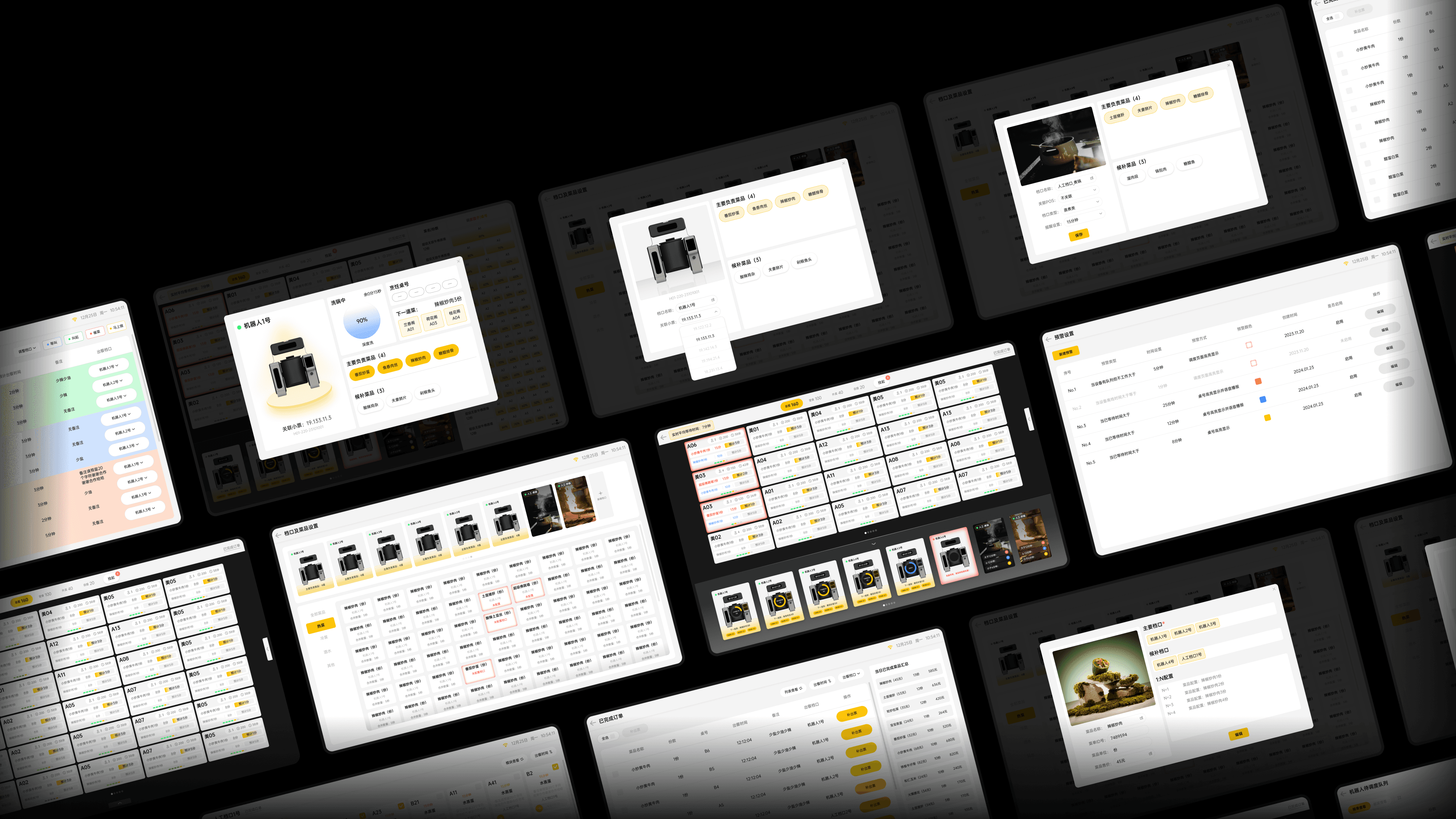 1. AI调度因子部分:基于订单属性、菜品工序与设备实时状态进行动态任务分配,实现资源最优配置。 2. 智能化订单管理:支持订单实时自动排序、合并与拆分,并可依据业务规则设置差异化优先级。 3. 实时可视化监控:通过调度TV端大屏与IPad看板,实时呈现订单进度、机器人工作状态与出餐时间预估。 4. 全链路设备联动:兼容炒菜机器人、IoT物联网设备及传统厨具,构建统一可控的烹饪执行环境。